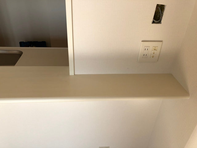 リフォーム現場で黄ばみなど汚れが目立っていた既存集成材カウンター