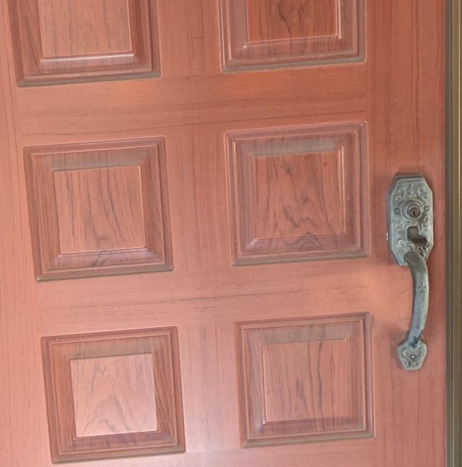 中古住宅の玄関ドアハンドルの再生塗装事例になります。