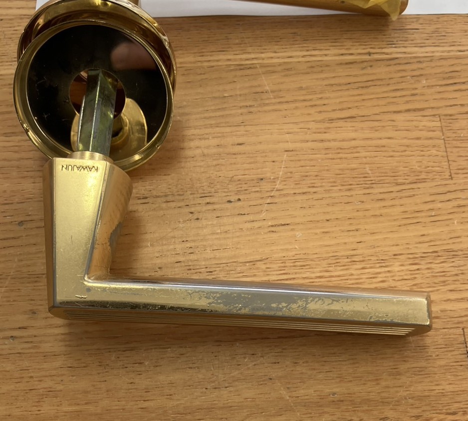 中古物件再販売のための既存ドアノブの表面がキズだらけだったので、下地をならしてウレタン吹付塗装して綺麗にした補修事例になります。